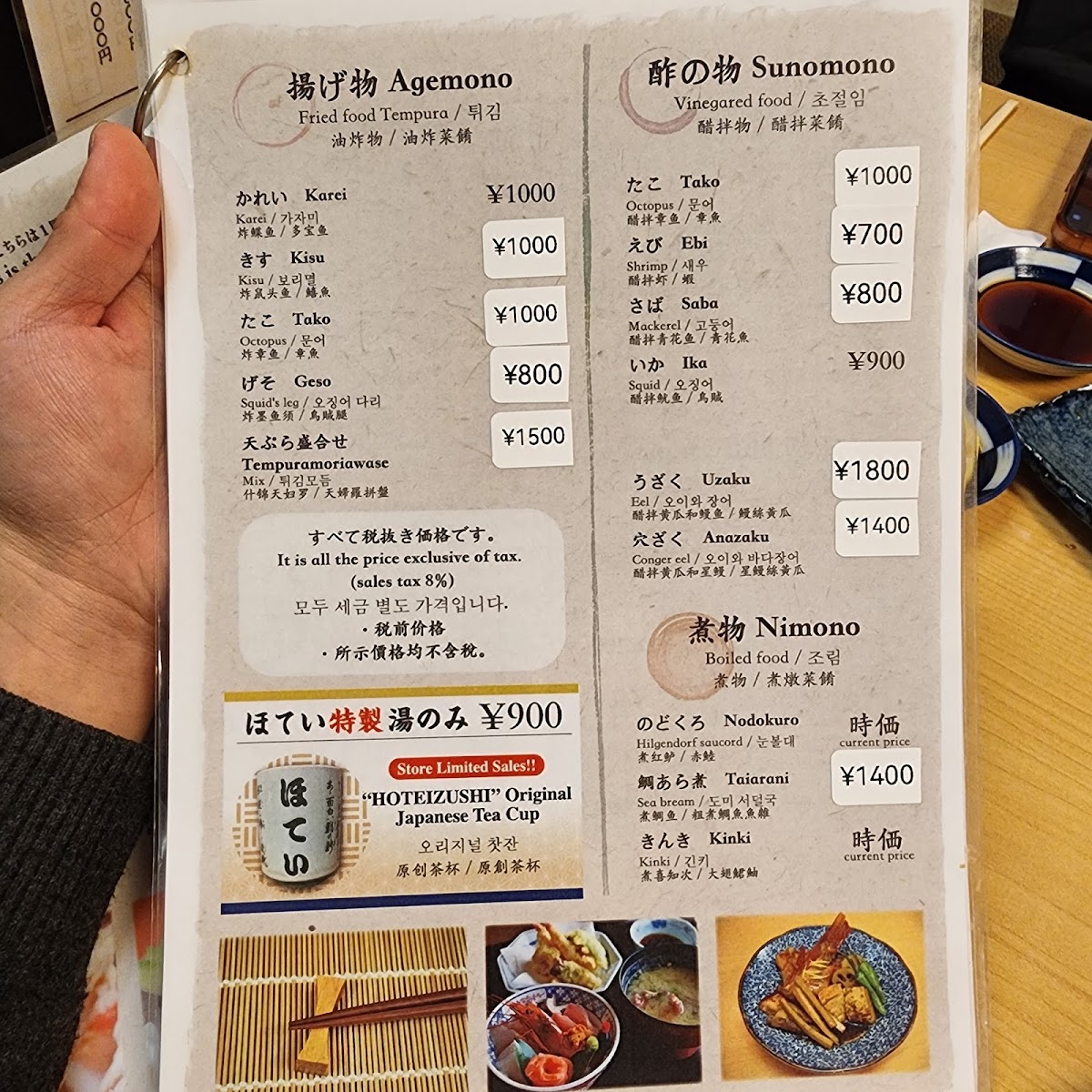 Overall, Hotei-Zushi Honten provides a comprehensive menu that caters to a range of tastes, from traditional sushi to more adventurous options, all prepared with the freshest ingredients and presented beautifully.